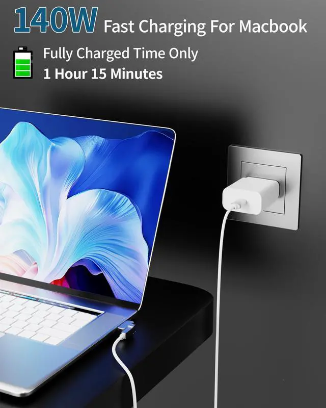 140W Ultra-Fast Charging for Efficient Power: This USB-C to cable is specifically designed for the latest MacBook series (M1/M2/M3/M4 chips), supporting 140W high-power output. It can charge a 16-inch MacBook Pro to 50% in just 30 minutes, with a 45% faster charging speed. It is also compatible with 67W/96W adapters, intelligently adjusting power output to protect the battery. Can be coiled into the size of a palm, easily fitting into bags, making travel and commuting hassle-free.
