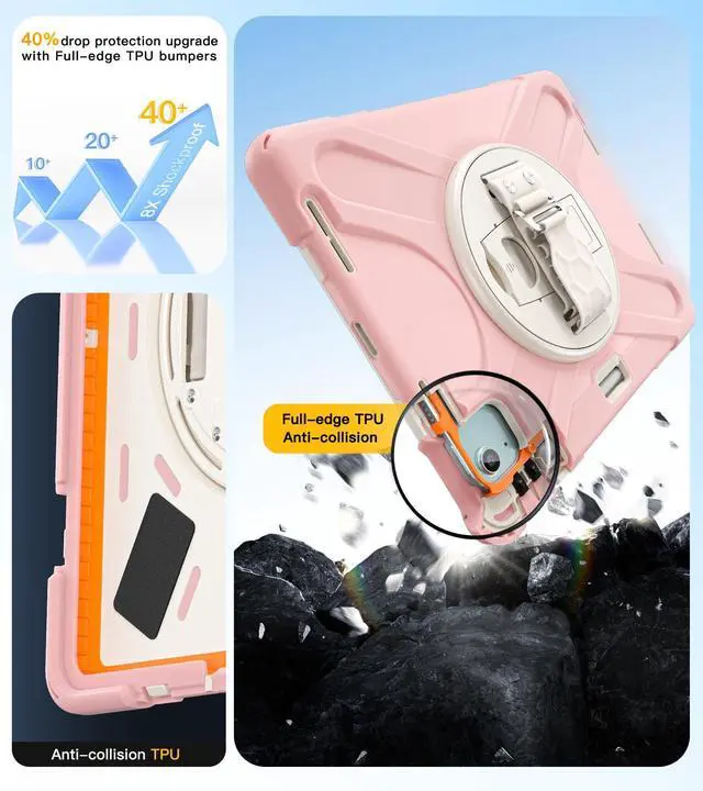 [Full Body Protection &Kids Friendly]:This case for ipad air 11 inch & iPad pro 11 inch features triple-layer construction and extra orange TPU cushioning strips, the outer silicone layer reinforces the dropproof performance of all four corners, plus there are 4x shockproof sponge pads on the bottom cover to prevent scratches to your tablet.Provides the ultimate in protection and durability, safe for kids to use.