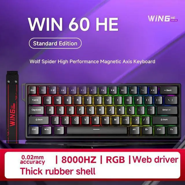 [Compact 60% Layout]The Win 60 HE designed for portability and space - saving, Keyboard length is only 302mmthe 60% layout is perfect for on - the - go gamers and those with limited desk space. It packs all the essential keys without sacrificing functionality