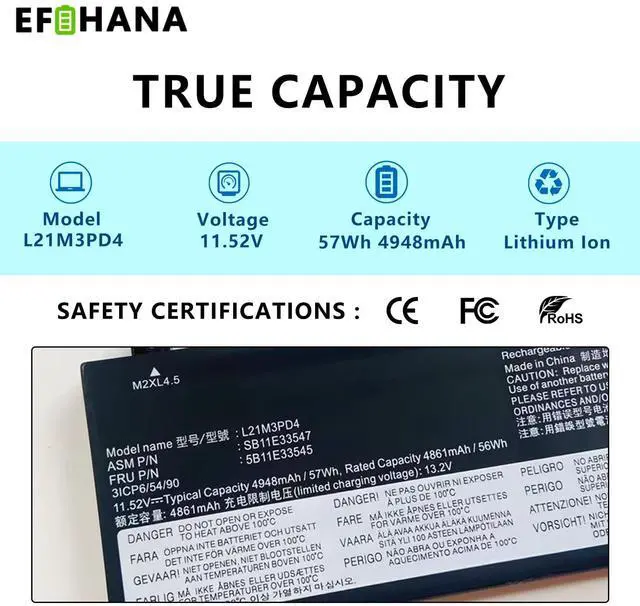 Voltage: 11.52VC apacity: 57Wh 4948mAh