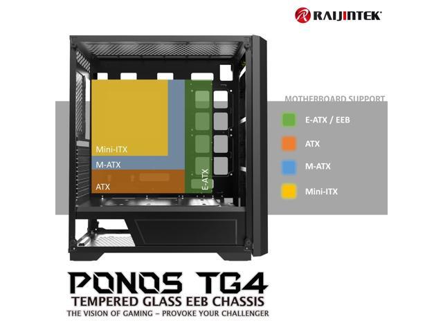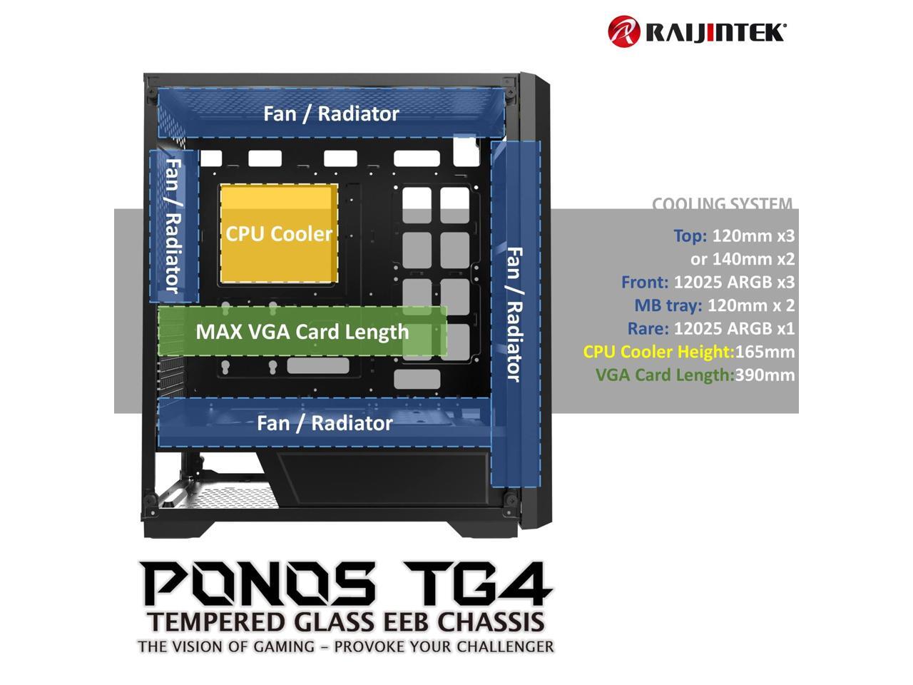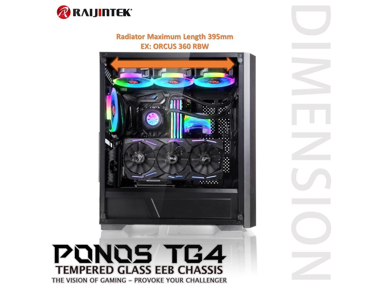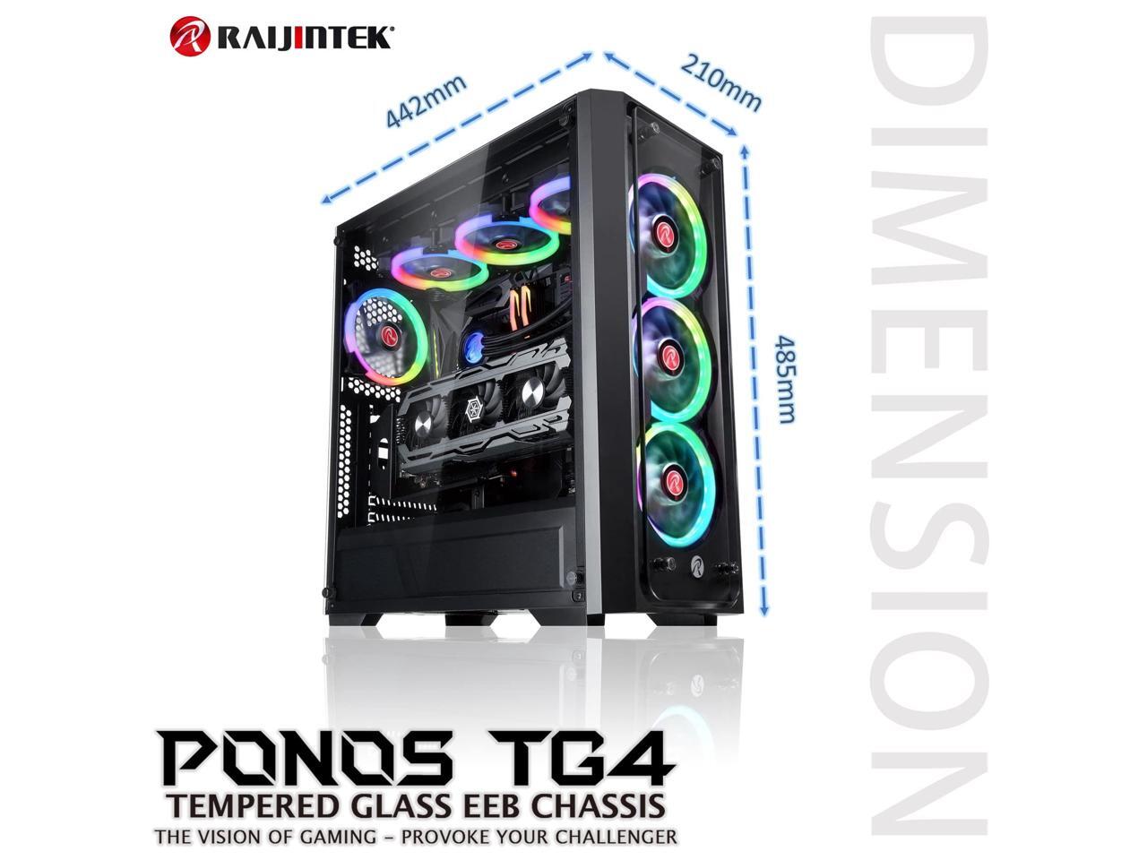RAIJINTEK PONOS TG4, Mid-Tower PC Case, with Tempered Glass (Front & Side), EEB M/B, Comes with 4pcs 12025 ARGB Fans, Compatible with Max. 390mm VGA Card, USB3.0 and Magnetic Dust Filters