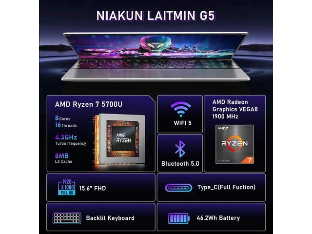 NIAKUN Gaming Laptop,15.6 Inch Laptop Computer,AMD Ryzen 7 5700U 8C/16T Processor (up to 4.3Ghz),16GB RAM 1TB SSD,AMD Radeon Graphics,15.6 FHD 1920 * 1080 Display,WiFi 5,BT5.0,Backlit Keyboard