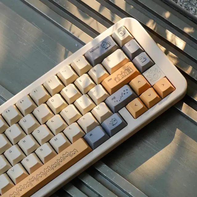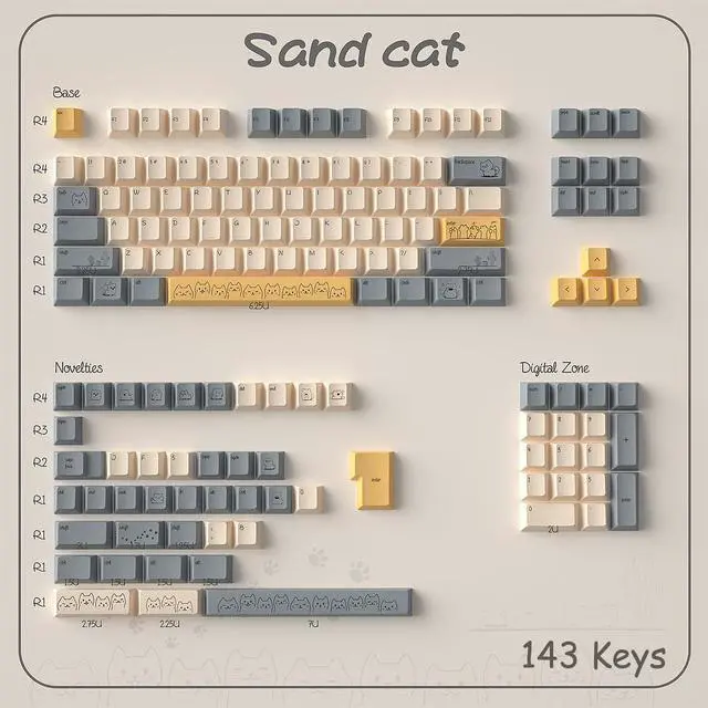 Sand Dune Cat Keycaps Set: Revel in a palette of soothing relaxed, with cute keycaps is graced with lounging cat, inviting you to pause and smile amidst your busy day. It's a must-have for enthusiasts who want to infuse their workspace with a dash of whimsy and a whisper of comfort!