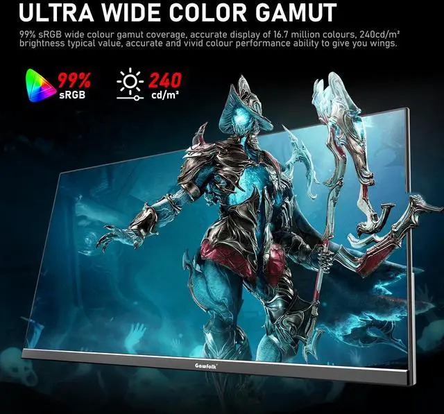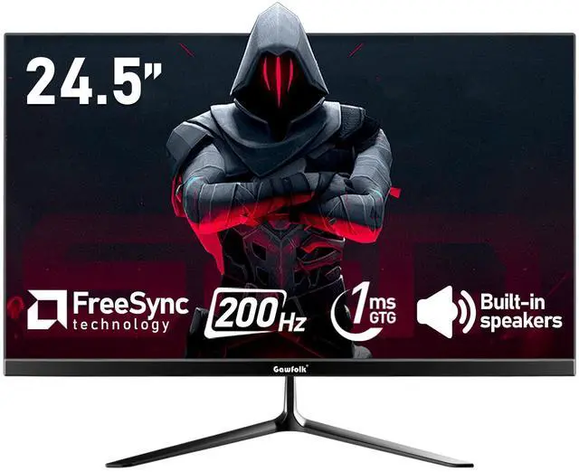 Gawfolk 24.5 Inch PC 200Hz Gaming Monitor, FHD 1080p screen, Built-in speakers, 1ms without Bezel, freesync, 99% sRGB, 178 ° Angle View, HDMIDisplayPort, Compatible with wall mounting 75*75MM - Black
