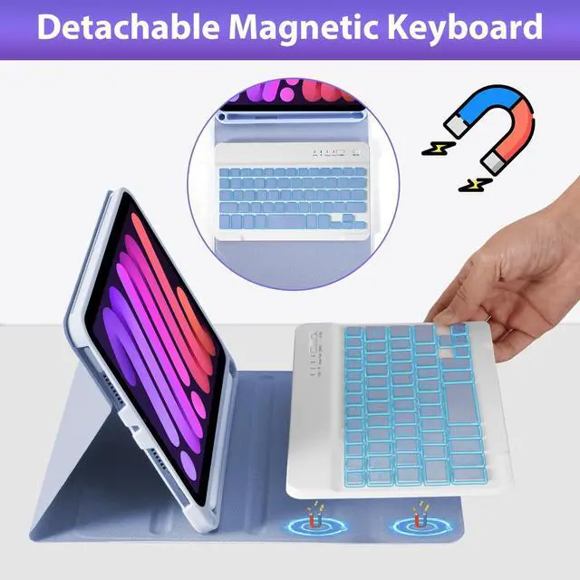 Backlit Keyboard: Enhance your typing experience with iPad Mini A17 Pro keyboard case which is magnetically detachable that offers 7 vibrant backlight colors. Whether you're working in low-light environments or simply want to personalize your device, this keyboard has you covered ^^