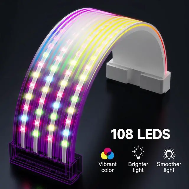 Thin light Board DesignThe RGB light board is used to combine with extension cables and modular cables to form RGB PSU cables to cover the messy and ugly motherboard or graphics card power supply cables, making the chassis look neater and cooler. The soft TPE material and 0.25 in slim design takes up less space, making it suitable for use in customized full-tower, mid-tower, or even smaller chassis to build a professional look ^^ Addressable ARGBSupport ASUS, MSI, GIGABYTE, ASRock and other motherboard addressing software, adjust various lighting modes and dazzling colors, and link lighting effects with compatible devices, including motherboards, graphics cards, RGB fans, and other computer peripherals to create an integrated lighting experience ^^ Three-side Light Effect108 LED light beads, front and side light-emitting design, provide enough brightness, day and night the same streaming light, led beads evenly distributed on the light board, provide uniform and soft light, can be combined 16.8 Million colors to create colorful colors and cool light patterns in your case ^^ Easy to InstallProvide 3 sizes of transparent cable combs, suitable for matching with the original modular cable, silicone modular cable, sleeved cables and 18awg or 16awg extension cables, just put the PSU cable into the clips of the RGB board at both ends, with a transparent wire comb to manage the PSU cables in the middle of the board, connected to the 5v3pin connector of motherboard, hub or the RGB controller can be completed the installation ^^ Packing Include and ServiceIncludes RGB light board compatible 3*8pin PCIE cables or longer 24Pin MB cable, 6 transparent wire combs, an instruction manual, a mini RGB controller; please read the instruction manual before use, if you don't know how to install or have other problems, please contact us, we will solve it at the first time!