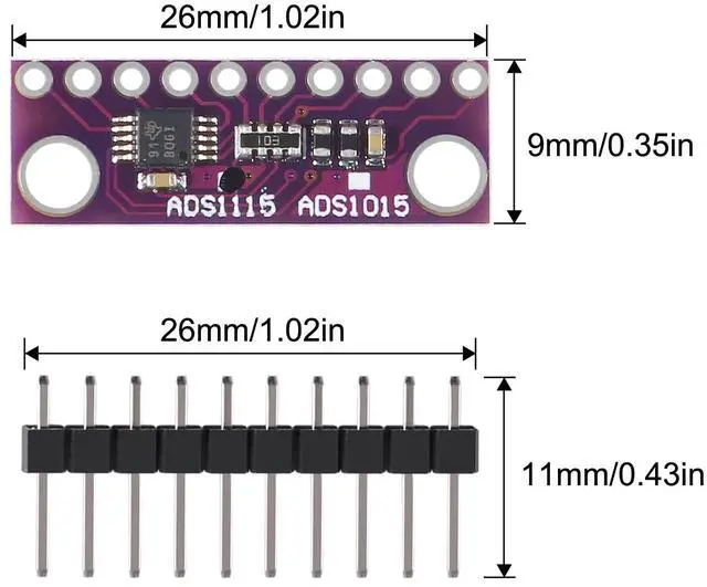 Package include: 3 X ADS1115 16 bit I2C ADC 4 channel development board