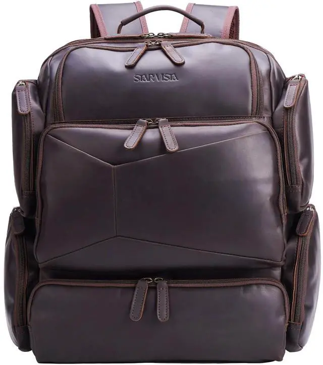 PREMIUM LEATHER -- By using full-grain cowhide leather of high-quality standards, this STAR VISTA backpack is built to last with a rugged vintage look and feel perfect for business travel or outdoor activities ^^ CRAFTSMANSHIP -- Thoughtful design, sturdy stitches and impeccable finishing, each detail comes with the warmth and dedication of our experienced artisans. YKK zippers along with other thick brass hardware ensure the backpack's durability in its everyday use for many years to come ^^ ROOMY INTERIOR -- Featuring 2 spacious compartments and plenty of front and interior zipper pockets, this backpack is a king of organization.