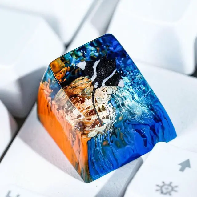 Manta Ray Artisan Keycap Orange and Blue Ocean R1 SA Profile Custom Sea Creatures Keycaps 1U ESC Handmade Gaming Resin Key Cap Cherry MX Switch Compatible Mechanical Keyboard Manta Ray Lover Gift