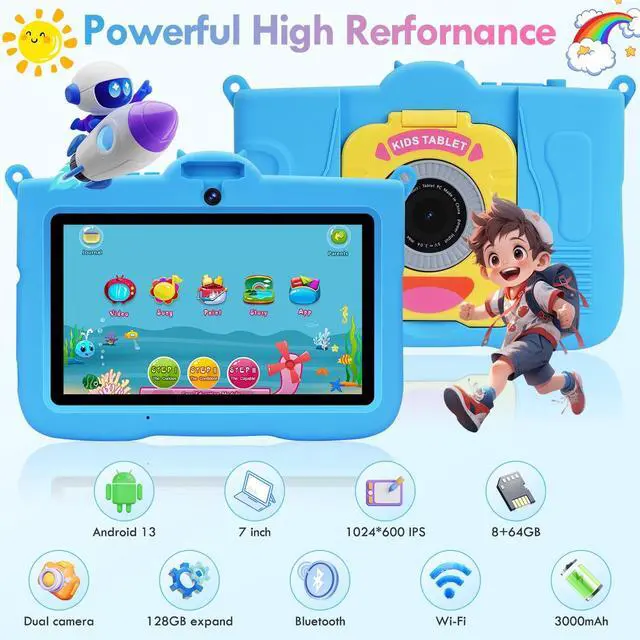Newest kids Tablet This latest 2025 kids tablet equipped with the latest Android system for an exceptionally smooth and responsive experience. This childrens tablet features advanced safety and privacy protection to keep your childs data as secure as possible. The tablet is GMS-certified, allowing you to download kids apps from Google Play. It also supports Widevine L1 and Netflix. ^^ Multiple Function Tablet for KidsThe tablet comes preloaded with the Google Kids Space app, offering a wealth of age-appropriate content. With a Wi-Fi connection and access to Google Play, parents can download educational apps, Children can enjoy a variety of fun educational activities including animal coloring, simple craft tutorials, interactive story listening, and engaging puzzle gamesall in a playful, learning-focused environment.