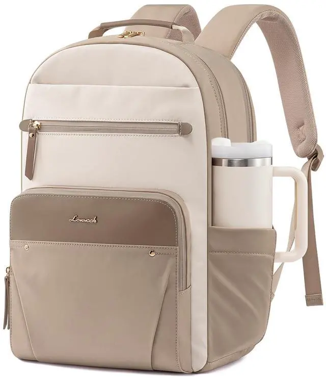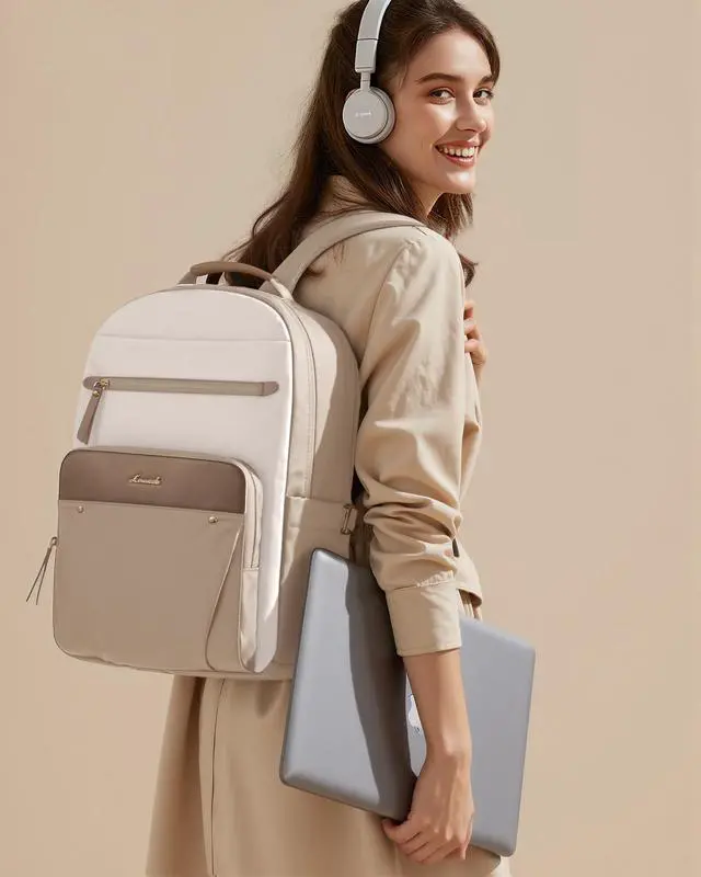 ^^ Independent Laptop LayerThis work backpack has a dedicated, cushioned compartment, offering nice protection for your laptop up to 17.3". Equipped with 4mm extra-thick padding, it safeguards your gadgets against bumps and falls. ^^ Travel-Friendly Features for EaseIdeal for the traveler, this women backpack features a hidden zip pocket for safeguarding passports and valuables. The luggage strap allows easy attachment to your suitcase, simplifying your journey. ^^ Comfortable & Durable MaterialEnjoy comfort with thick shoulder straps and back padding, specifically designed to alleviate shoulder and back pressure. Made from high-density, water-resistant material, this backpack is built to withstand daily wear, ensuring your belongings stay secure and dry.