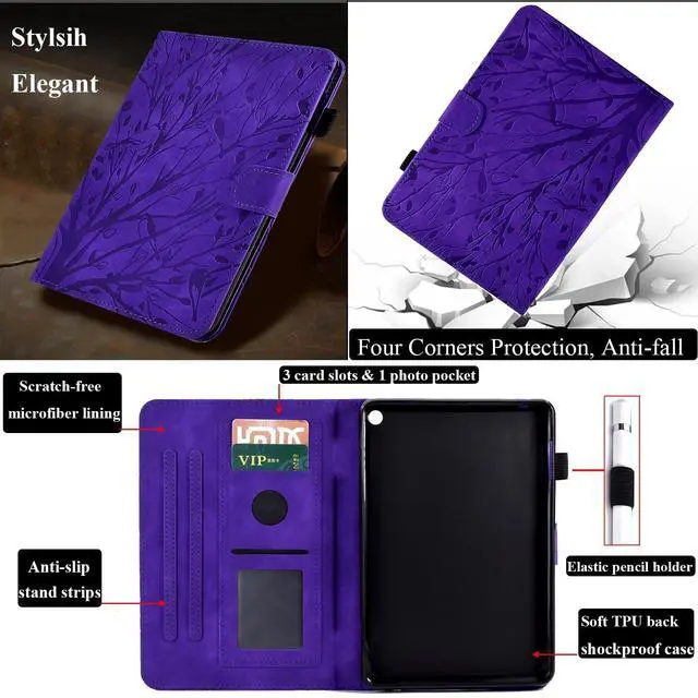 with Card Pockets: Fire HD 8 tablet 12th/10th Gen Book vintage wallet sleeve case has card slots, for storing your credit cards, cash, photos, etc. 6. Stylish & Embossing