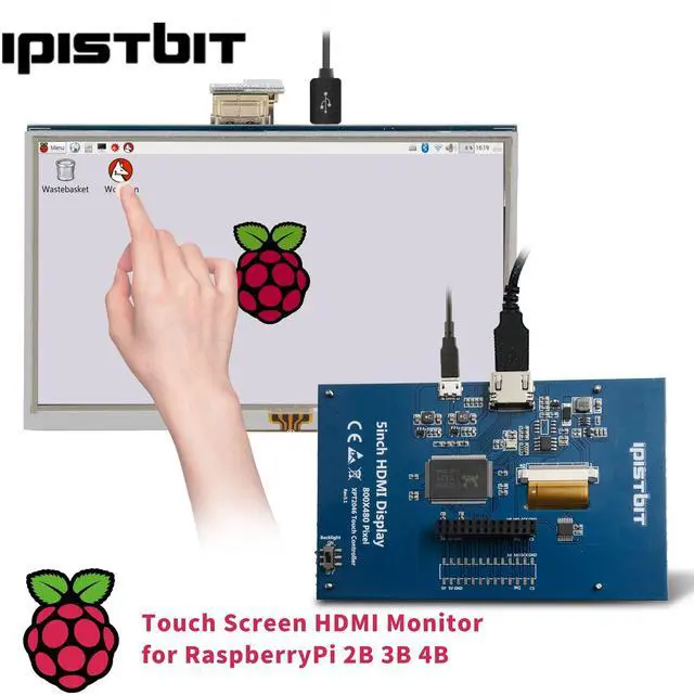 Small MonitoriPistBit 5-inch HDMI monitor featuring an 800x480 LCD screen. This compact display offers a high-resolution picture, a wide viewing angle, and rapid response times, ensuring a vivid and immersive visual experience. Supports manual backlight control, allowing you to turn off the backlight when necessary to reduce power consumption. ^^ Perfect for Raspberry PiiPistBit touch screen monitor is equipped with a resistive touch interface and comes with a stylus for easy use. It is fully compatible with Raspberry Pi 4, 3B+, 3B, and 2B+ as well as mainstream mini PCs like BB Black, Banana Pi, Jetson Nano, and more.