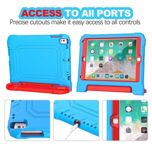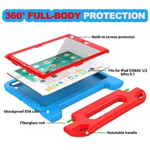 Full Protection: YIHE iPad 9.7 inch 6th/5th generation kids case, it's constructed from a durable, kid-safe, lightweight, and shock-absorbing thick EVA material, protects your tablet from bumps and drops ^^ Built-in
