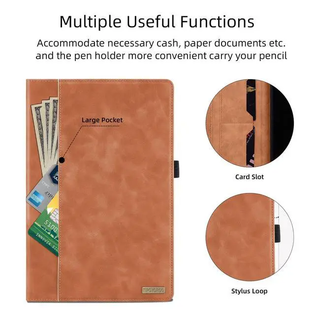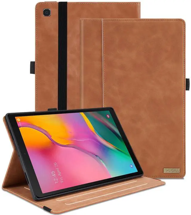 CompatibilityThe protective case is specially designed for Samsung Galaxy Tab A 10.1 inch 2019 version (model: SM-510 / T515). Not applicable to 2016 Samsung Galaxy Tab A 10.1 inch, 2018 Samsung Galaxy Tab A 10.5 inch and any other models of devices. Please confirm the model number before purchase. ^^ Slim & ProtectiveThe Tab A 10.1 case features synthetic leather, a soft microfiber inner layer and a TPU back cover to provide your device with comprehensive protection against scratches, impact and drop protection. ^^ Precise Cutouts & Snug FitAllow users to have full access to all features (Cameras, Speaker, Ports and Buttons). Classic and professional design. Large pocket and two card slots are for bank cards, cash, paper, documents etc. ^^ Adjustable AnglesThree anti-slip strips provide multiple viewing angles of the bracket position, which is convenient for reading, watching movies or typing. You can flexibility to adjust the perspective to suit your needs and free your hands.