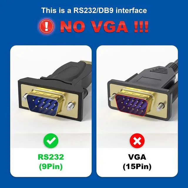 Please NOTE: this is MALE RS232 to DB9 SERIAL CABLE, Not VGA!!! It is 9 pin, NOT 15 pin!! Look carefully of the Pin is match with your device. Before ordering, please confirm the interface gender is waht you need. After receiving, please read user manual /instruction at first and download the Driver at first from FT232 Official website or Cisco website. Customer service always online. ^^