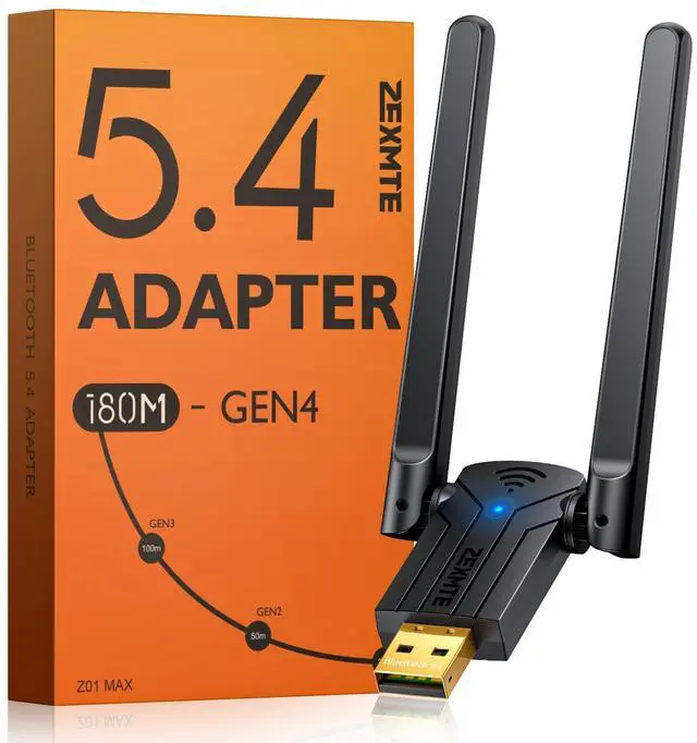 5.4 Bluetooth AdapterPA-powered for rock-solid connections Dual-mode (BR/EDR + BLE) combats interference, so your connection never drop ^^ 590ft Range Cover Your Whole SpaceClass 1 tech + dual antennas blankets large homes/offices. No more dead zones ^^ Connect 7 Devices at OnceSync speakers, keyboards, mice, Headset, etc., all simultaneously ^^