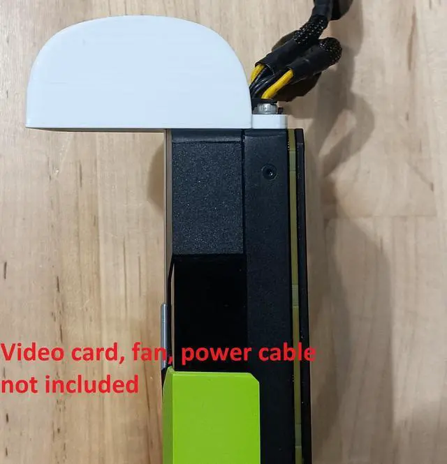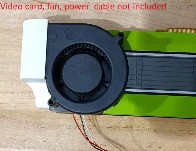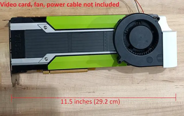 This is a fan shroud kit for an Tesla P40, P100, V100, K80, and M40 video cards. The part where the 97x33mm fan goes in was designed with a very slight angle, so the fans will fit snugly inside. The fan adapter only adds 1.20 inches to the total length.