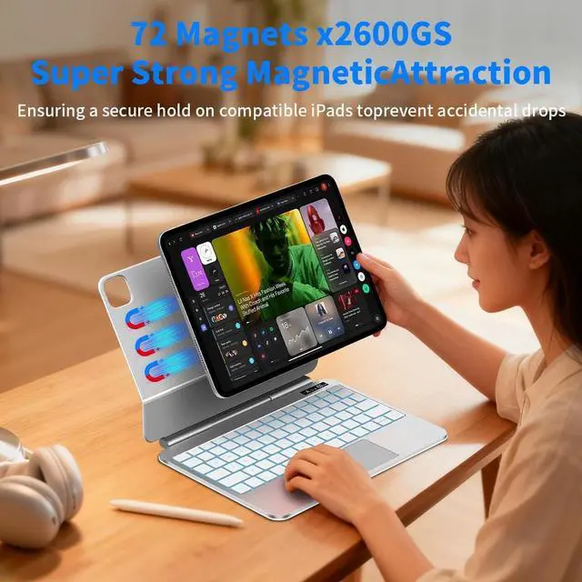 MAGNETIC FLOATING LAPTOP TRANSFORMATION: Switch from tablet to laptop in seconds with a strong magnetic design and floating cantilever stand. Adjust the angle freely for typing, drawing, or watchingperfect for productivity, study, travel or hybrid work environments ^^