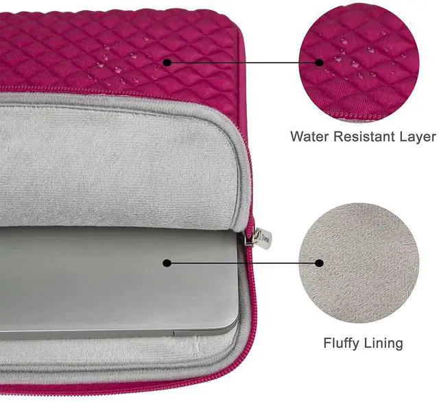 SOFT INNER & SMOOTH ZIPPER: Inner soft padded layer to protect the surface of laptop caused by accidental scratches.. Strong top-loading zipper ensures the laptop sleeve stays close, smoothly and protect the contents inside perfectly. ^^