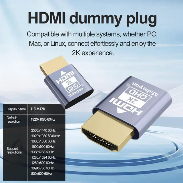 Malarpon HDMI Dummy Plug fit-Headless Display Emulator DDC EDID Headless Ghos with Windows Mac OSX Linux Great for Graphics Acceleration Support 1920x1080@60Hz 6P