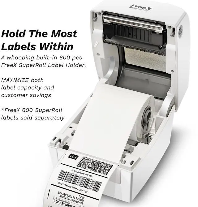 BlazingFast Performance and LongLasting Durability Boost your productivity with industryleading highspeed printing at up to 170 mm/s and a crisp 203 dpi resolution. With a remarkable printing lifespan of 492, 126 ft (150 km) equivalent to more than 984, 252 labelsthis printer is built to handle high-volume operations without compromising quality. CostEffective and Versatile Say goodbye to expensive ink or toner replacements. The FreeX WiFiMAX uses thermal printing technology, which not only cuts costs but also supports any direct thermal label. For enhanced performance and savings, we also offer our exclusive FreeX SuperRoll 600 labels.