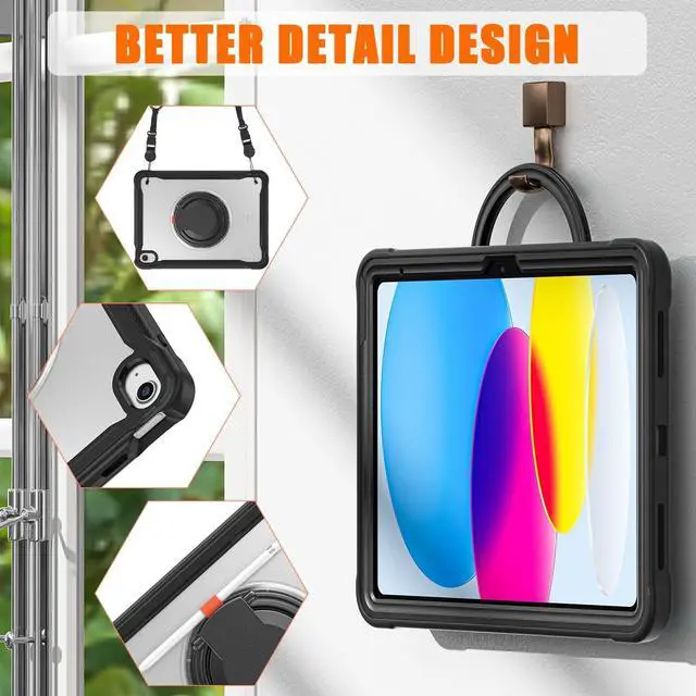 SENLAN Case for iPad 10, iPad 10th Generation 2022 10.9 inch case 360 Ring Stand with Shoulder Strap Pen Holder Translucent Hard PC Back Cover (iPad 102022, Black)