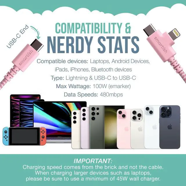 ^^ Fast Charging Compatible: Power up your devices quickly! When paired with a compatible fast wall charger, you can experience significantly reduced charging times, getting you back to using your devices quicker (even your big laptops and iPads).