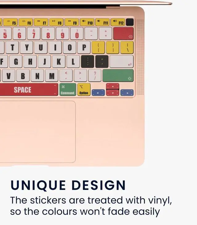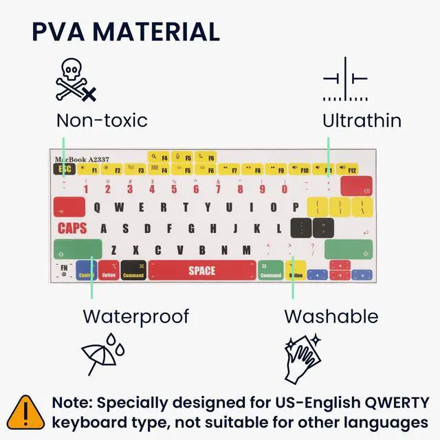 DURABLE DESIGN: Vinyl-treated decals for long-lasting colour brilliance, helping to prevent fading over time Scope of Delivery 1x QWERTY US English Keyboard Stickers Compatible with Apple MacBook Air 13 M1 (A2337)