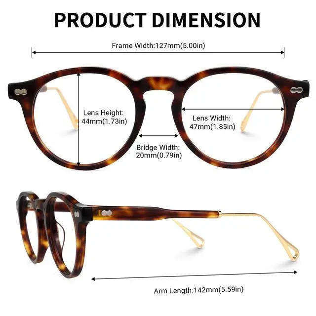 QUALITY MATERIAL The frame is made of Acetate, strong and durable. ^^ [LIGHT WEIGHT] The eyeglasses frame weighs only 25.6 g, which will be lighter to wear and suitable for long-term wear. ^^ [SUITABLE OCCASION] Classic round frame, suitable for study, office wear, anti-blue lens can protect your glasses.