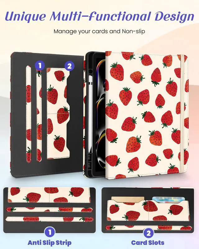 Multi-Functional Design: This for iPad Pro case 13 inch M4 2024 features an elasticized cord strap, which ensures that your tablet closes securely, provides slip or drop protection. It also has two card slots designed to hold your bank cards business cards and other cards