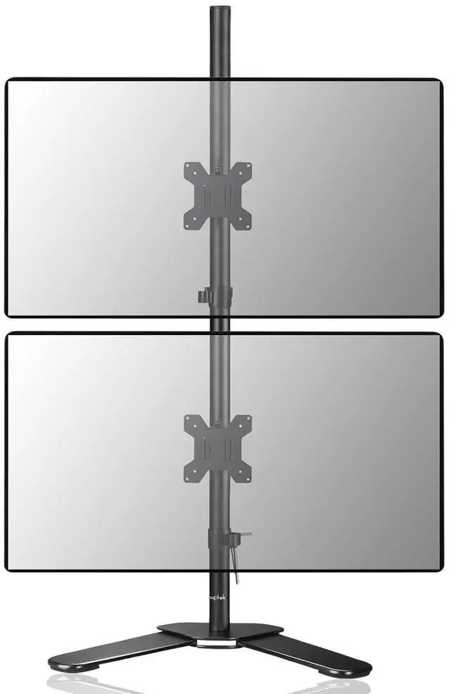 Compatibility - Dual monitor mount ideal for most screens up to 32" and 22lbs each with 75x75mm or 100x100mm backside mounting holes. ^^ Aticulation - Rotate 360, tilt 45 up and down, swivel 45 left and right, extra tall height adjustment along the center pole. ^^ Free standing Stand - Free standing base let you easily move your monitors to anywhere. ^^ Integrated cable management - Keeps your desk tidy and clean by organizing your power and AV cables in detachable cable holder. ^^ Easy installtion - Step-by-step user manual and organized hardware kit for hassle free mounting.