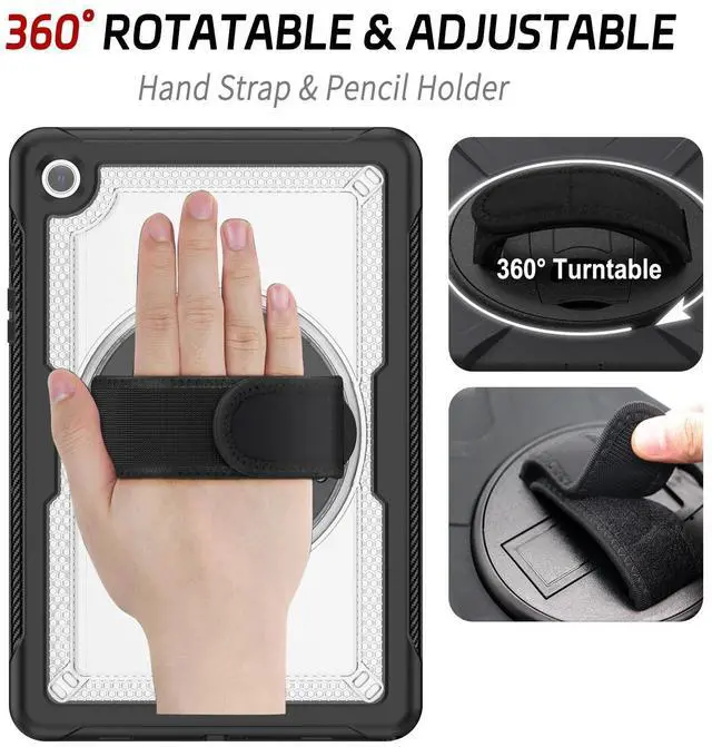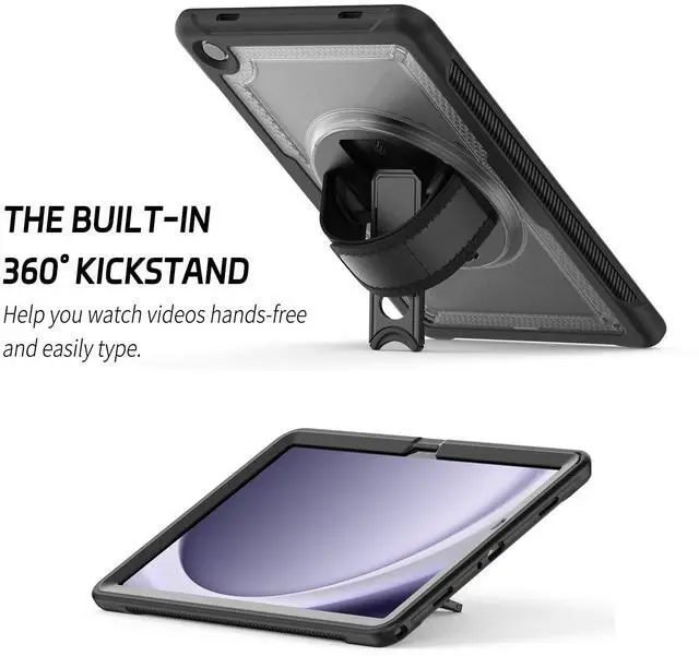 ^^: Bezel made of material to enhance drop resistance and, our case creates the full-body protection. Not only shock/-proof/durable but also comfortable holding feel. ^^ The Galaxy Tab A9 Plus case allows, without having to remove the iPad from the case. Shock prevention keeps away from shocks, port covers of the case prevent dust from entering into tablet.
