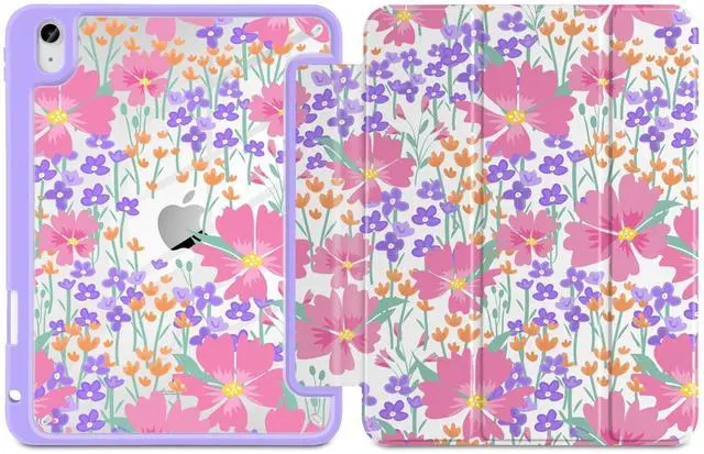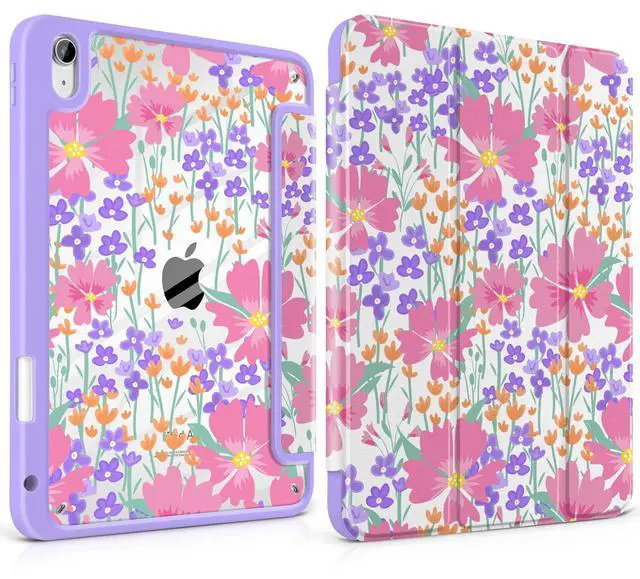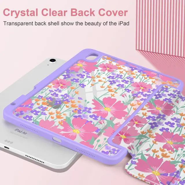 MEEgoodo Case for iPad Air 11 inch M3 2025 / M2 2024,for iPad Air 5th / 4th Generation Case 10.9 inch 2022/2020, Tablet Cover with Acrylic Transparent Back Shell, Cute Pastel Flowers