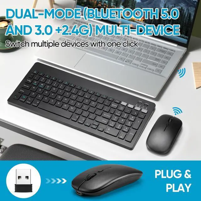 The keyboard and mouse compatible with iOS, including Computer, Desktop, PC, Laptop, Android Tablets Windows, Apple iPhone, iPad, Android Samsung Windows Surface tablet cell phone,etc.