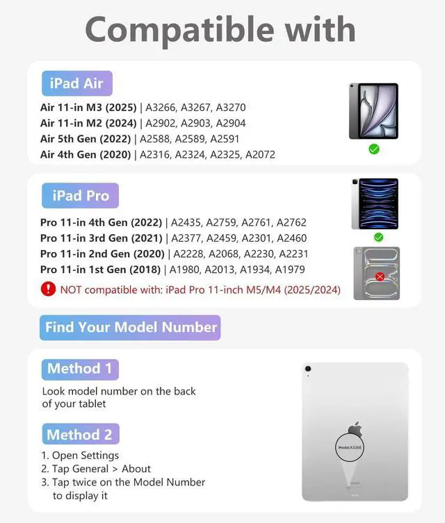 Air 11-in (M3/M2) 2025/2024 (Model: A3266, A3267, A3270, A2902, A2903, A2904), Air 5th/4th