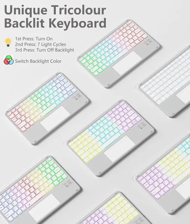 Colors Rainbow Backlit Keyboard: Keyboard for iPad Air 11 inch have 7-color rainbow backlight that can display three colors simultaneously. You can switch between static rainbow backlight mode and dynamic breathing light mode to make typing more fun and atmospheric. With three adjustable brightness levels, you can turn off the backlight when it is not needed ^^ Detachable