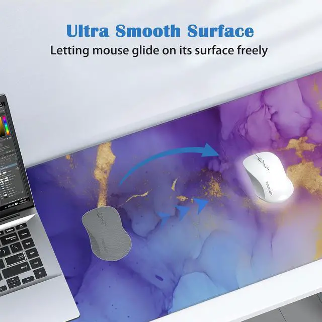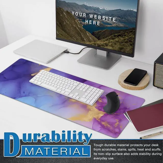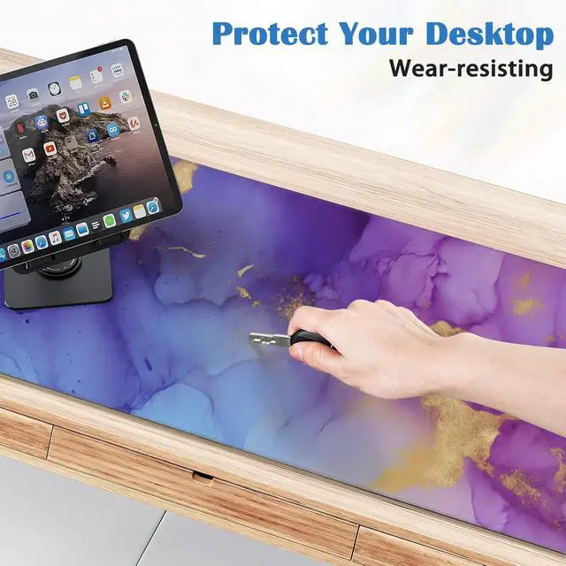 Environmental, and safe to use. ^^ Soft and Non-slip Rubber BaseThe soft and dense non-skid nature rubber base keeps the pad firmly in place, it can effectively prevent the mouse and keyboard from sliding and moving for stable operation. The desk pad is flexible enough to be rolled up for easy transport, to move around so you can work or game wherever you want. ^^ Suitable for many occasionsLarge enough size can protect the desktop from abrasion and liquid spills. Works well on all types of desks including wood, glass, leather, metal, marble desk and more.