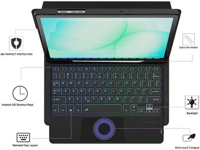 Multi-Touch Trackpad Keyboard: Equipped with an intelligent touchpad, you can precisely control and navigate, realize the combination of tablet computers and computer functions, and make your tablet like a real laptop. control your Samsung Galaxy Tab A11+/A9+ on several things. Edit documents, browse the network and create presentations at unparalleled speed to bring you high productivity convenience. Even the most complicated workflow can become so easy ^^ High-Quality