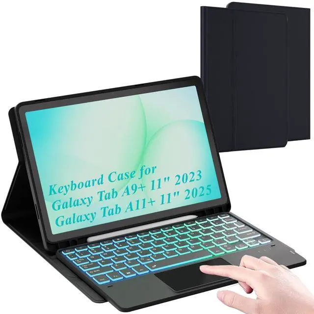 Compatibility: This keyboard case is specially tailor-made for 11 inch Samsung Galaxy Tab A11+ Plus (SM-X310/X315/X236) 2025 & Galaxy Tab A9+ Plus (SM-X210/X216/X218) 2023 tablet PC, with Rainbow lighting Trackpad Bluetooth keyboard (QWERTY Layout), precise sections enable full access to all connections, sensors, speakers, Microphones and cameras ^^ Rainbow