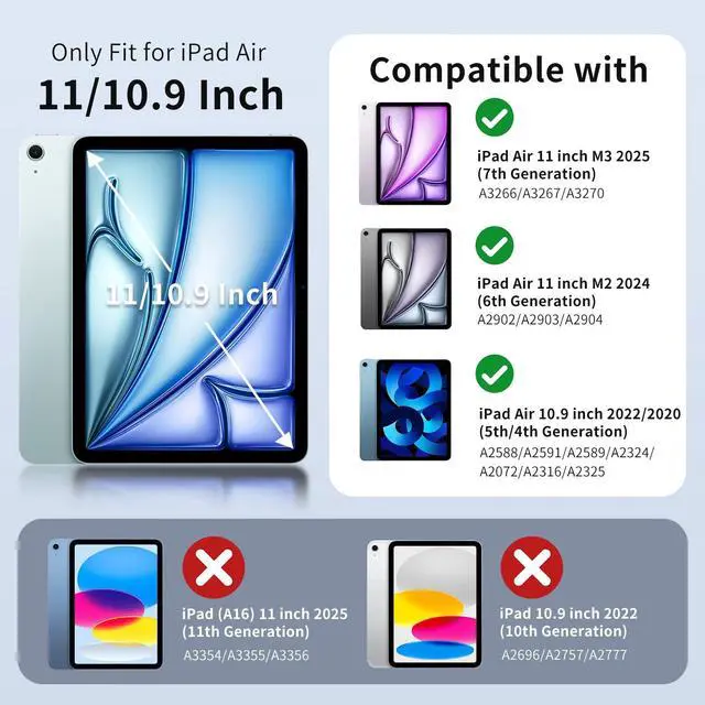 [Compatibility] Specially designed for iPad Air 11 inch M3 (2025) /M2 (2024) iPad Air 7th/6th Generation.