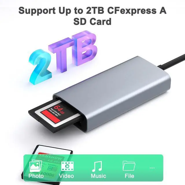 Professional CFexpress Type A/SD Card Reader: Because the USB 3.2 Gen 2 CFexpress Type-A and SD dual-slot memory card reader transfers your data at lightning speedyou can spend more time creating and less time waiting on downloads. Especially for Pro Vloggers, Influencers, Photographers Filmmakers and Videographers.