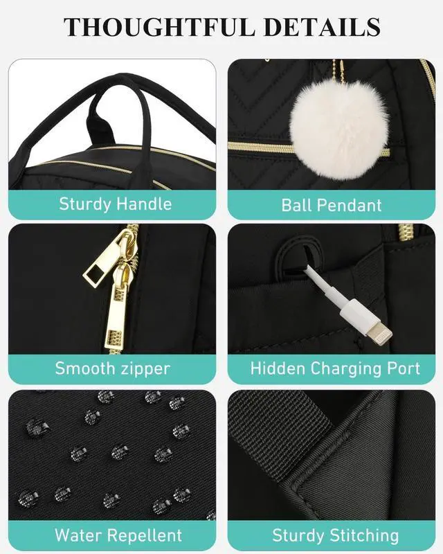 Large Capacity: Featuring a separate padded laptop compartment that holds and protects a 16 / 17 inch laptop, ensuring your tech stays safe on the go. The large main compartment is roomy for daily necessities, such as folders, text books, lunch box, clothes and electronic. Quick access front pockets are perfect for keeping all of your smaller items secure. On the outside, it has two water bottle pockets and a back anti-theft pocket for secure storage ^^