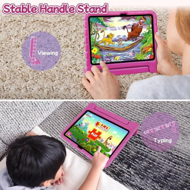 ^^ Kid-Friendly: Our iPad A16/iPad 10th generation case for kids comes with an anti-slip handle stand, made from durable, lightweight, eco-friendly EVA foam. It's easy for kids to carry, can double as a stand when needed, super convenient.