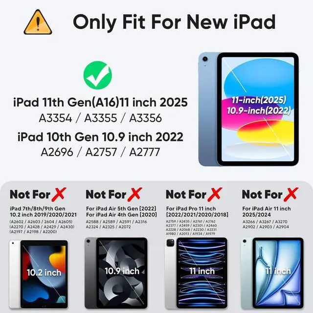 Gen 2022: Specifically designed for iPad 11th Generation (A16) 2025 and iPad 10th Generation 10.9 -inch 2022 release (Model: A2696, A2757, A2777). Not compatible with other models. Please confirm your iPad model number before purchasing ^^