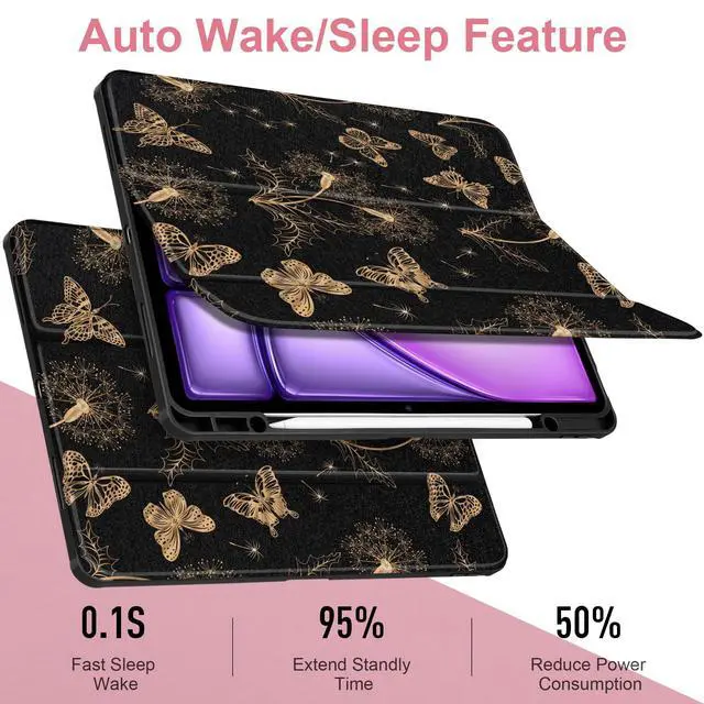 M3/M2 Chip Characteristic: 1. The case is made of premium PU exterior, microfiber lining and clear acrylic back cover 2. Case automatically wakes your tablet when opened and puts it to sleep when closed 3. You can easily fold the cover into different positions to create a stand for reading, viewing, typing, or making FaceTime calls 4. Built-in pencil holder, grab your tablet pencil effortlessly whenever you want, easily carry your tablet pencil with your device 5. Easy to Installation and remove 6. Convenient to use all the controls and features