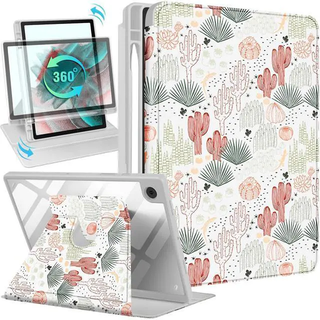 Wazzasoft for Samsung Galaxy Tab A8 Case 10.5 Inch Folio Cover with Pencil Holder Women Girls Cute Girly Teens Kawaii Cactus Plants Unique Design Rotating for Samsung A8 Tab Cases SM-X200/X205/X207