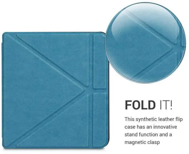 LEATHER LOOK: eReader case is made of durable synthetic leather in petrol with soft interior to protect against shocks, falls, drops, scratches and bumps ^^