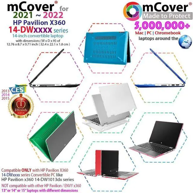 NOTE: Before placing order, PLEASE make sure to verify your laptop model number as this case is MODEL specific and NOT interchangeable. ^^ NOT fitting other HP Pavilion or ENVY laptops. NOT compatible with ANY other HP laptops as well. ^^ Made of high-quality translucent polycarbonate material which is shatter-proof and will protect your 2021 14" HP Pavilion X360 14-DWxxxx series 2-in-1 Convertible Laptops all around ^^ Designed to perfectly fit the 2021 14" HP Pavilion X360 14-DWxxxx series 2-in-1 Convertible Laptop with dimension of 12.76 x 8.7 x 0.71 inch ( 32.4 x 22.1 x 1.8 cm ) ^^ 2-piece light-weight ( 9.7 oz or 275 g ) shell easily snaps on and off.