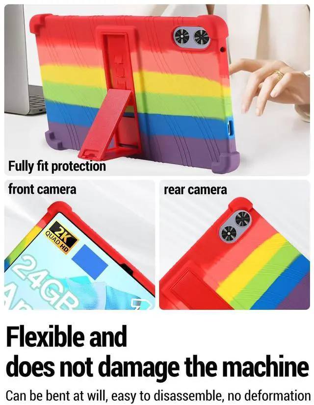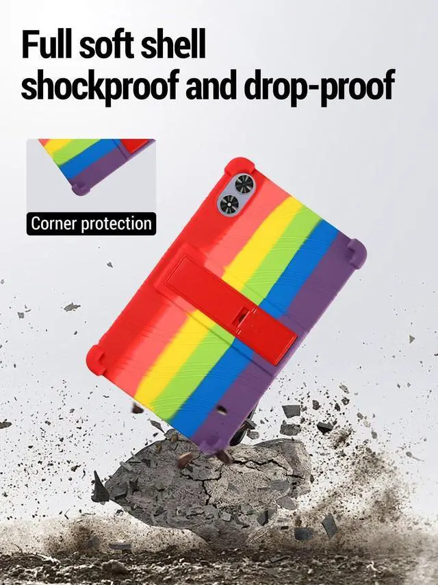 for FiryMid P108-A116C12 inch Protective case, Shockproof Lightweight Silicone Protective Cover with Stand, Child-Friendly Protection, Easy to Clean Design, Rainbow.